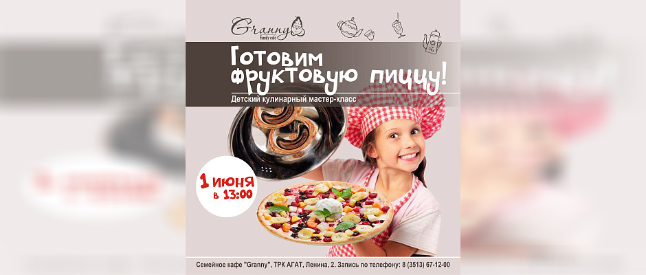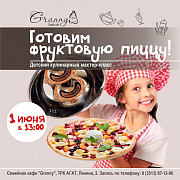 Большую и вкусную фруктовую пиццу будут готовить юные повара на детском кулинарном мастер-классе, который состоится 1 июня в 13-00 в семейном кафе «Granny».