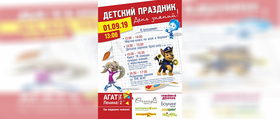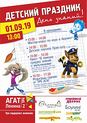 День Знаний уже совсем скоро и Развлекательный центр "Агат" подготовил увлекательную праздничную программу. 1 сентября гостей ждёт множество сюрпризов!