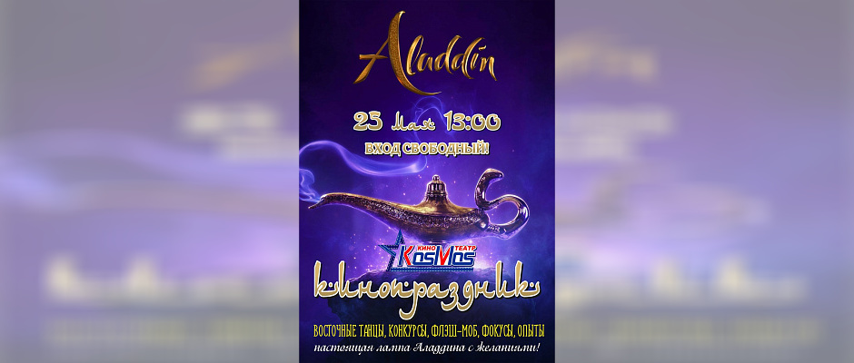 25 мая в 13:00 Кинотеатр «Космос» приглашает на кинопраздник посвященный выходу семейного фильма "Аладдин"