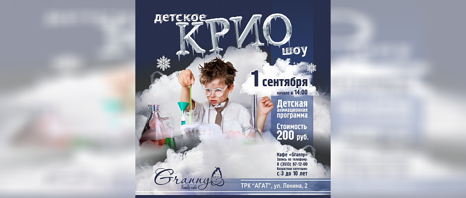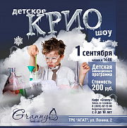 1 сентября незабываемое крио-шоу организует семейное кафе «Granny» для ребятишек.