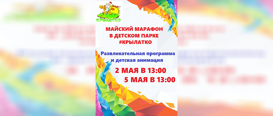 С 1 по 5 мая детский парк Крылатко объявляет #МАЙСКИЙМАРАФОН. Организаторы подготовили для маленьких гостей ежедневную развлекательную программу и детскую анимацию.