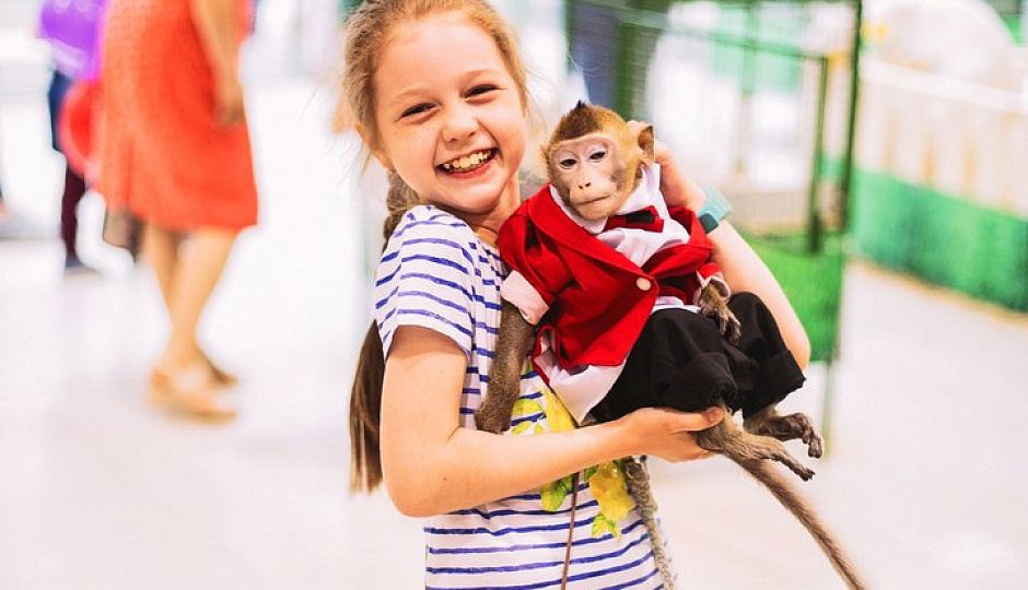 Вы сможете увидеть забавных енотов, пушистых белочек, задорных обезьянок, красавца павлина, ласковых кроликов, изящных лебедей и множество других зверюшек!