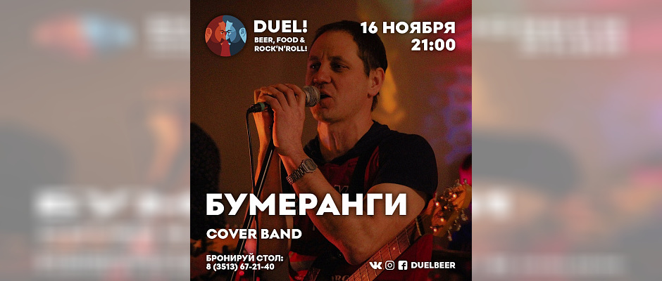16 ноября в пабе DUEL! музыкальным настроением вечера заправляют ребята из кавер-группы «Бумеранги»