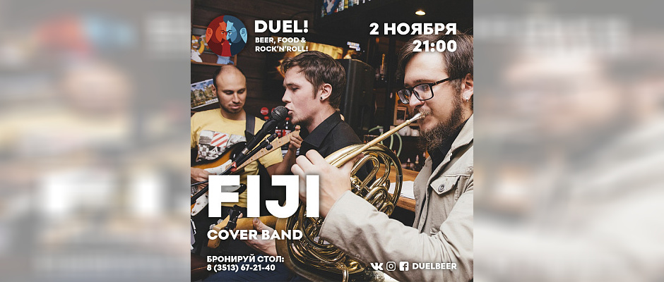 2 ноября в пабе DUEL! поднимаем настроение с веселой компанией! Будем петь, танцевать и отдыхать под музыку от FIJI! Рвут меха на аккордеоне, возможно ломают валторну о барную стойку, а может быть и еще чего.