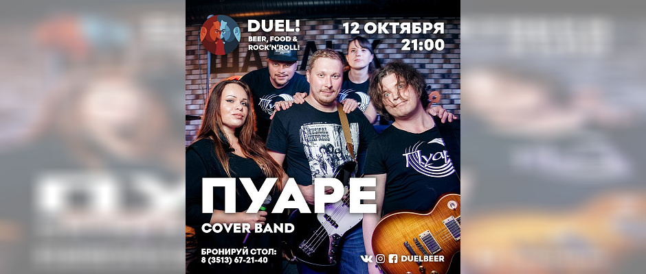 12 октября в Pub & Brewery DUEL! отыграют специальные музыкальные гости из Челябинска music band ПУАРЕ.
