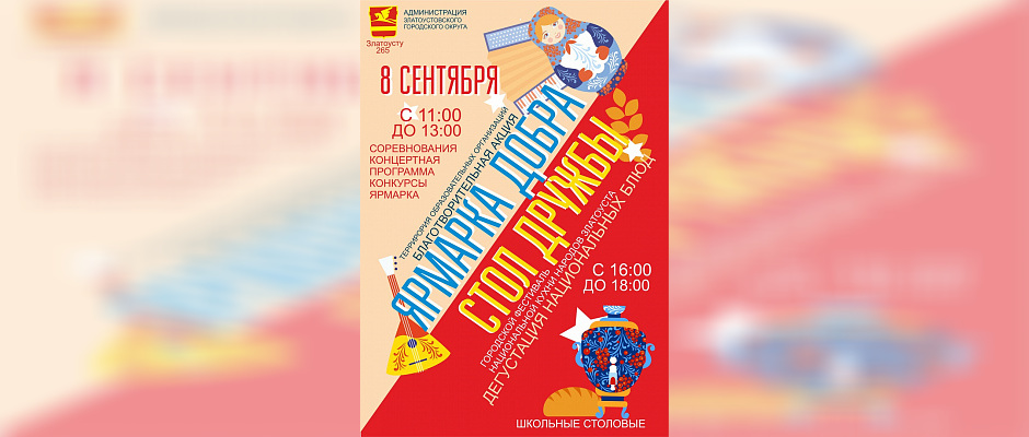 8 сентября, в единый день голосования, в образовательных учреждениях будет проходить городской фестиваль национальной кухни народов Златоуста «Стол Дружбы», приуроченный к 265-летнему юбилею города.