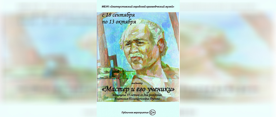 Выставка «Мастер и его ученики» посвящена 95-летию со дня рождения Анатолия Поликарповича Дудина. Будучи одним из создателей художественно – графического отделения Златоустовского педагогического училища, А. П. Дудин с первых дней преподавал на нем живопись и технологию живописи. Выставку составят работы многочисленных учеников Анатолия Поликарповича, в работах которых живет частичка души талантливого педагога.