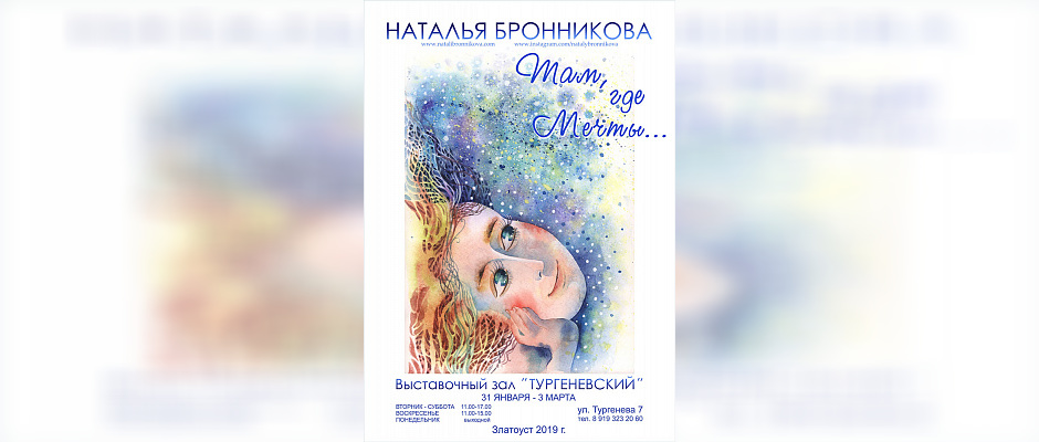 Наталья Бронникова, художница из Миасса, пишет в различных техниках: графика, живопись, иллюстрация, графические новеллы. Ее работы яркие, легкие, лиричные. Автор переносит зрителя в другой – мир мечтаний и детских снов. Картины Натальи Бронниковой завораживают ценителей в России и за рубежом, а весь февраль будут доступны златоустовцам. Выставку «Там, где мечты» можно увидеть в «Тургеневском» до 3 марта, с 11 до 17 часов со вторника по субботу, и в воскресенье с 11 до 15 часов.