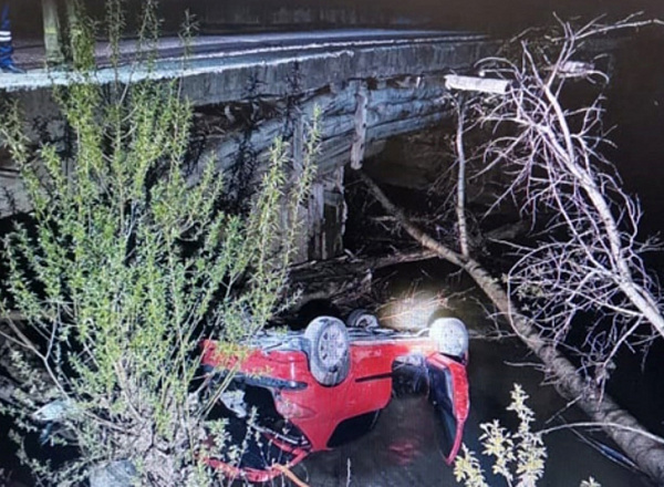 О дорожной аварии, которая случилась на Кусинском шоссе Златоуста, рассказали в пресс-службе поисково-спасательной службы Челябинской области. Иномарка упала с моста, перевернулась на крышу и замерла у среза воды. Выбраться из салона водителю и пассажиру помогли очевидцы.