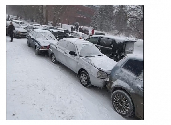 Утром понедельника, 21 марта, на подъёме к кварталу Медик в Златоусте столкнулись сразу 17 машин. Причиной массового ДТП стали сильные снегопад и гололёд.