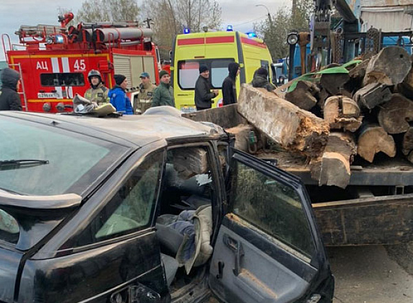 Пункт назначения: в Златоусте легковушка влетела под грузовик с брёвнами